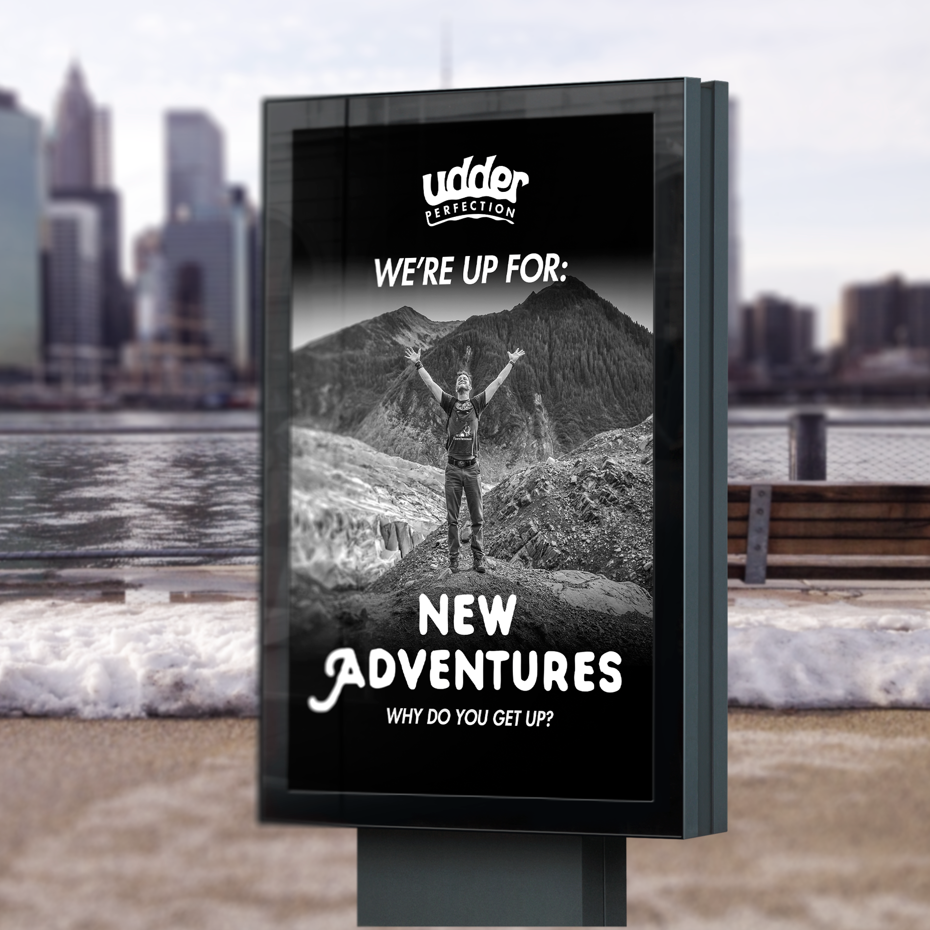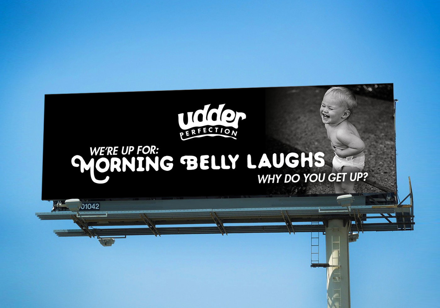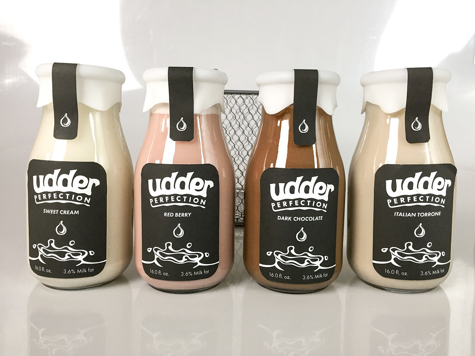 Udder Perfection is a fresh and unique approach to boutique dairy products. UP is bold yet unobtrusive; strong without being loud. UP attracts a market of healthy, active adults looking for satisfying "splurge" snacks.